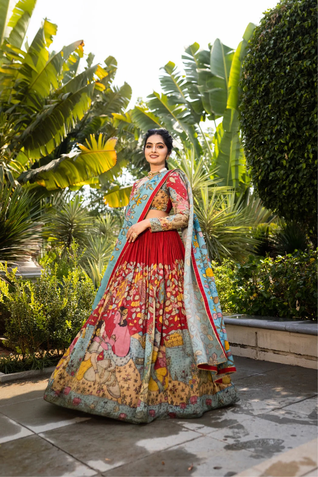 Fully Stitched Red kalamkari lehenga set un-stitched